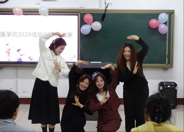 艺海扬帆,青春如歌。歌唱《昨夜风今宵月》时,细腻婉转的嗓音,将古典诗词的意境演绎得淋漓尽致,《美丽的神话》经典旋律重新演绎,男女对唱深情款款,情感真挚动人,《稻香》轻快的节奏、质朴的歌词,搭配选手自然真挚的演唱,让整个教室充满阳光与希望,将不同风格的旋律融入校园夜晚;表演舞蹈《新疆民族舞》时,舞者们身着绚丽民族服饰,动作整齐有力,笑容灿烂自信,充分展现了新疆舞蹈的独特魅力与青春活力,《鸳鸯戏》的柔美雅致,则用肢体语言传递了多元艺术魅力;小品《内卷急诊室》更是以幽默接地气的剧情,结合医学专业特色,引发全场共鸣,成为当晚的“人气黑马”。从妆造的整洁得体,到舞台上的互动共情,同学们用认真的准备与投入的表现,展现了医学生群体“既懂专业严谨,也怀文艺温度”的一面。