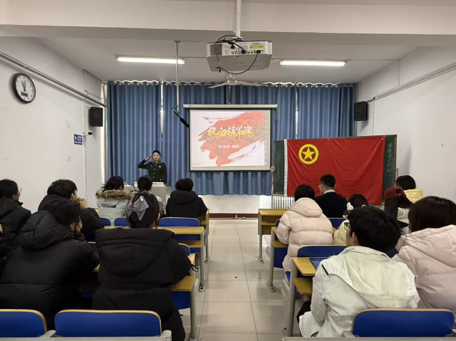 阿依布尼·阿合木江结合自身经历,分享了自己在武警机动部队服役时所经历的难忘时光,用“当兵后悔两年,不当兵后悔一辈子”的口号向同学们传递了自己的心声,鼓励有意向的同学们积极参军入伍,让同学们深刻感受到了军营魅力。他鼓励有从军之心的同学勇敢逐梦,在青春征程上书写华章。柴静茹曾服役于陆军某部队,她向同学们分享了直升机索降,海上3000米训练以及武装越野等经历,讲述部队生活给自己带来的坚韧品格与专业技能成长,也为有入伍意向的同学提供了实用参考。最后,冯昌顺就征兵政策核心要点及相关福利保障政策进行补充说明,提醒同学们密切关注报名信息,把握入伍契机,勇敢追逐军旅梦想,以青春之我、赴时代之约,为强国强军事业积极贡献青春力量。